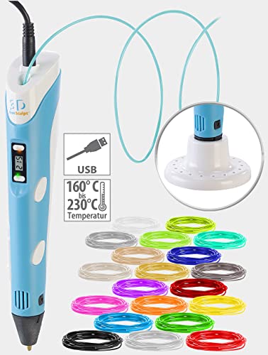 Für 1,75-mm-PLA- und ABS-Filament • Geschwindigkeit stufenlos einstellbar • Temperatur stufenlos einstellbar: von 160 – 230 °C • Übersichtliches LED-Display • Inklusive 20 bunter PLA-Filamente (je 5 m), 3D-Drucker-Stift für dreidimensionale Zeichnungen • Temperatur stufenlos einstellbar: von 160 bis 230 °C • Kontroll-LEDs für Betriebs-Status und Temperatur • 20 verschiedenfarbige PLA-Filamente (je 5 m), Geeignet für PLA- und ABS-Filamente: 1,75 mm Stärke • Geschwindigkeit stufenlos einstellbar • Vorwärts- und Rückwärtsgang: Filament einziehen und ausgeben • Stromversorgung: per USB (USB-Netzteil bitte dazu bestellen) oder USB-Powerbank (bitte dazu bestellen), Drucke in vielen Farben: Filament einfach auf Knopfdruck wechseln • Leistungsstarker Motor mit Metallzahnrad und Metall-Getriebe • Hochwertige Keramik-Düse • Maße: 18,4 x 4,6 x 3,1 mm, Gewicht: 57 g, 3D-Drucker-Stift 3D-free inklusive USB-Stromkabel, 20 PLA-Filamenten und deutscher Anleitung. 3D Stift Kinder – Außerdem relevant oder passend zu: Kugelschreiber, Geschenkideen, Reparatur, Spielzeug, drucken, Basteln, drei d, Spiele, Bastel, Druck, Malen, Print, wie • Bei Einzelbestellung senden wir den Artikel direkt im versandsicheren & versandoptimierten Original-Produktkarton. Das spart Verpackungsmüll und schont die Umwelt.
