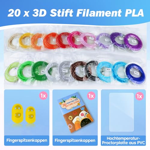 Entdecke das AFXXE 3D Stift Filament-Set mit 20 Farben, perfekt für kreative Projekte! Umweltfreundliches PLA-Material ist sicher für Kinder und Erwachsene. Inklusive Vorlagenbuch, ideal für Anfänger und Kunstliebhaber. Lass deiner Kreativität freien Lauf!