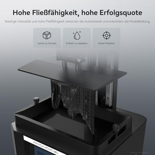 Die Anwendung des Harzes gestaltet sich sehr einfach, dank seiner niedrigen Viskosität. Dieser Aspekt erleichtert das Befüllen und Abziehen, was besonders für Einsteiger hilfreich ist. Auch die schnelle Aushärtungszeit lässt das Drucken wesentlich effizienter erscheinen.