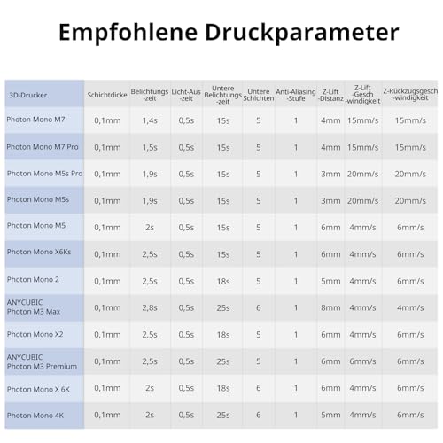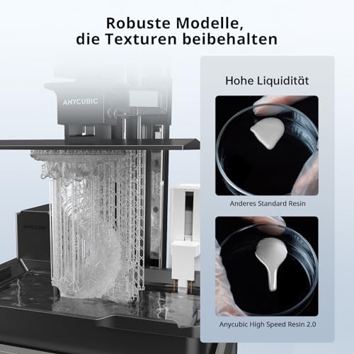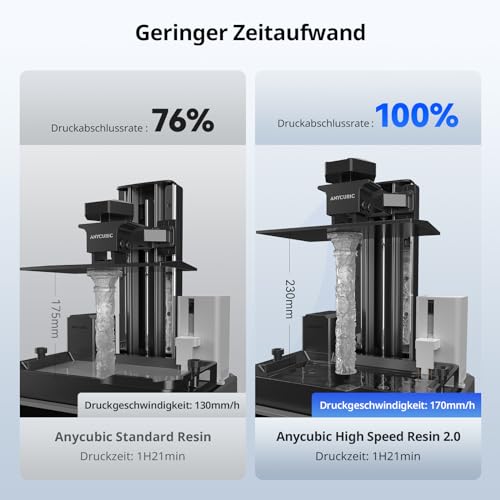 Die Druckgeschwindigkeit des ANYCUBIC High Speed 2.0 Resins ist bemerkenswert. Mit einer Schichtdicke von 0,1 mm benötigt es nur 2,11 Sekunden pro Schicht, wodurch Druckzeiten erheblich verkürzt werden. Dies ist besonders vorteilhaft für Projekte mit einer hohen Anzahl an Schichten.