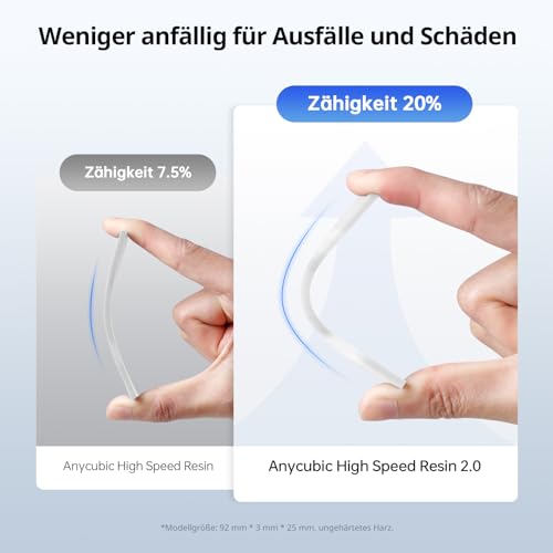 Ein weiterer Pluspunkt sind die Sicherheitsmerkmale. Die verbesserte Elastizität des Harzes von bis zu 20% reduziert die Anfälligkeit für Druckfehler oder Schäden während des Druckprozesses. Dadurch sind Modelle widerstandsfähiger gegen mechanische Einwirkungen.