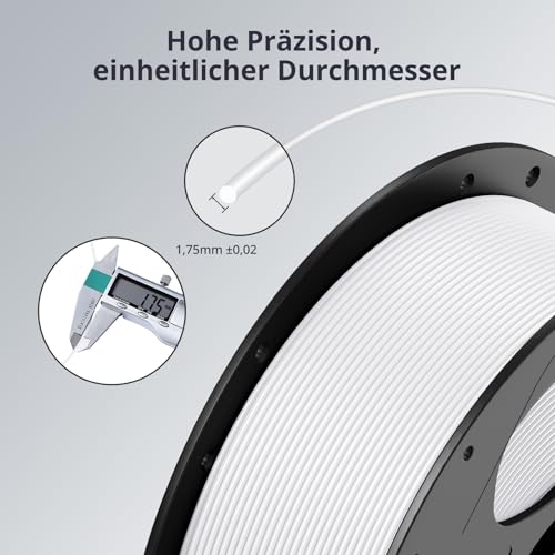 Das ANYCUBIC PLA Filament in Weiß ist ein hochwertiges 3D-Druckmaterial, das mit einem Durchmesser von 1,75 mm und einer Maßgenauigkeit von +/- 0,02 mm überzeugt. Es bietet eine hervorragende Druckqualität und ist sowohl für Anfänger als auch für erfahrene Benutzer geeignet. Mit fortschrittlicher RFID-Technologie sorgt es für eine optimale Druckeinstellung und vereinfacht den Druckprozess erheblich.