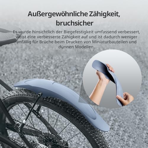 Zusätzlich zur Zähigkeit bietet es eine hohe Flexibilität, was bedeutet, dass gedruckte Modelle auch sturzresistent sind. Das reduziert das Risiko von Schäden während des Transports oder der Handhabung erheblich.