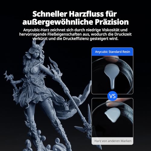 Das ANYCUBIC 3D Druckerharz bietet hohe Präzision und geringe Schrumpfung für beeindruckende Druckdetails. Mit hervorragender Fließfähigkeit und schneller Aushärtung eignet es sich optimal für die meisten 3D-Drucker. Erlebe die atemberaubenden Farben deiner Modelle!