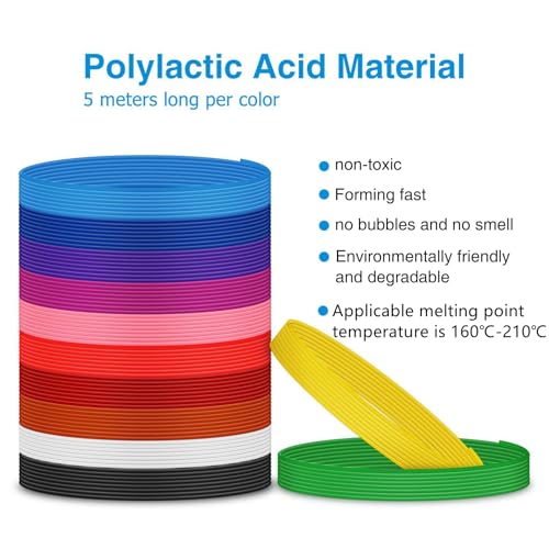 | Features | Sicherheitsmaterial – unsere Nachfüllpackungen für 3D-Drucker bestehen aus PLA-sicherem Material, geruchlos und ungiftig. Anwendbare Temperatur ist 160℃-210℃, kann schnell ohne Bruch und Blasen geformt werden, hochwertiges Material druckt reibungslos, fast kein Stau mit gleichmäßig fließenden Filamenten. Auch sicher für Kinder., Verschiedene Farben – Dieses 3D-Stift-Filament-Set ist sehr farbenfroh, einschließlich dunkler und heller Farben in verschiedenen Farben. Jede Farbe ist bis zu 5 m lang, was Ihre Anforderungen an die 3D-Kunsterstellung vollständig erfüllen kann., Starke Kompatibilität – die Filament-Nachfüllpackungen sind universell gestaltet und mit 3D-Druckern kompatibel, die Filamente mit einem Durchmesser von 1,75 mm und einer Maßgenauigkeit von +/- 0,05 mm verwenden. Es kann für die meisten 3D-Druckstifte verwendet werden, bei denen hervorragende Detaillierungs- und Anwendungsanforderungen erforderlich sind, einfach zu bedienen für Kinder und Erwachsene., Geschenkidee – hergestellt nach höchsten Standards, seine Konsistenz mit rundem Durchmesser sorgt für einen reibungsloseren Durchgang durch die Düse, erleichtert Ihnen den 3D-Druck, ist ein großartiges Starter-Kit oder als Geschenk für Ihre Kinder und Kunstliebhaber, um Spaß beim Basteln zu haben und Zeichnen., Lieferumfang: 20 farbige PLA 3D-Stiftminen (Durchmesser 1,75 mm), Länge jeder Farbe 5 m, Gesamtlänge 100 m. Beachten Sie, dass die Farben eine zufällige Kombination sind. |