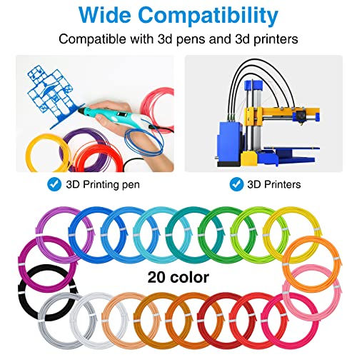 ASTARON 3D Stift Filament 1.75 PLA 20 Farben, 3d Drucker Filament, 16,4 Ft pro Farbe Insgesamt 328 Ft 3D Printer Filament 1,75 mm PLA Filament 3d Druckmaterialien Set