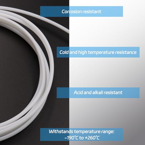 | Features | Packungsinhalt: Sie erhalten einen 4 m langen ptfe schlauch mit einem schneider, außendurchmesser: 4 mm, innendurchmesser: 2 mm, nicht leicht zu verformen, biegbar, geeignet für 1,75 mm verbrauchsmaterialien für 3D-drucker., Hochwertige materialien: Dieser 3d drucker schlauch besteht aus hochwertigem PTFE mit ausgezeichneter korrosionsbeständigkeit, hochtemperaturbeständigkeit, kältebeständigkeit, säure- und laugenbeständigkeit und altert auch bei längerer sonneneinstrahlung nicht so leicht und hat eine lange Lebensdauer., Temperaturbereich: Dieser PTFE teflon tube hält einem temperaturbereich von -190 °C bis +260 °C stand. Er ist hoch hitzebeständig, die auswirkung auf die temperatur ändert sich nahezu nicht, wodurch die lang anhaltende leistung und sicherheit von 3d-druckprojekten auch in rauen umgebungen gewährleistet wird., Einzigartiges design: Dieser teflonschlauch hat ein durchscheinendes Design, wodurch der Filamentfluss leicht überprüft werden kann. Die glatte oberfläche des schlauchs hat eine geringe reibung, wodurch der widerstand minimiert und ein präziser und erzielen sie präzises und schnelles drucken., Vielseitigkeit: PTFE-schläuche ist für 1,75 mm filament von 3D-druckern geeignet, eignet sich zum drucken spezieller filamente wie abs, nylon und polycarbonat und kann auch zum isolieren von drahtschutzschläuchen und zum schutz von rohren vor ätzenden flüssigkeiten verwendet werden. |