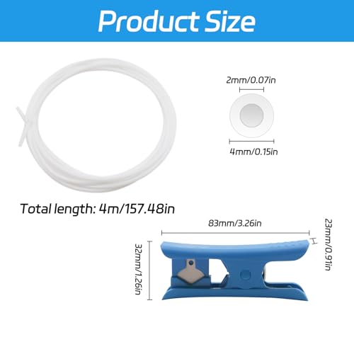 BEASAFY 4m PTFE Schlauch 4mm, 3D Drucker Schlauch, Ptfe Tube Teflonschlauch Zubehör mit Schlauchschneider, PTFE Schlauch 1,75 mm 3d Drucker Zubehör für Creality K1/K1 Max/Ender 3V3