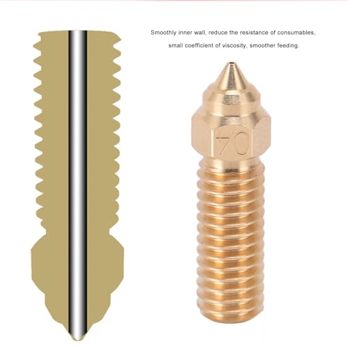 | Features | Glatte Innenwand: Glatte Innenwand der 3D-Druckerdüse, reduziert den Widerstand von Verbrauchsmaterialien, kleiner Viskositätskoeffizient, gleichmäßigere Zuführung., WÄRMELEITFÄHIGKEIT: Der Extruder-Druckkopf besteht aus Messing für bessere Wärmeleitfähigkeit und hohe Härte für schnelles Drucken., KOMPATIBLE MODELLE: Der Extruder-Druckkopf ist kompatibel mit K1, CR M4, Vyper, Kobra, Sovol Sv06 Plus, Sv07 und anderen 3D-Druckern., KOMPATIBLE MATERIALIEN: Messing-Extruderdüsen eignen sich für die meisten FDM-Druckmaterialien wie PLA, ABS, PETG, TPE, TPU, PC und so weiter., VERHINDERN VON VERSTOPFEN: Die abgeschrägte Schneidöffnung ist abgerundet, um den Widerstand der Kanten gegenüber den Verbrauchsmaterialien zu verringern, eine reibungslose Zufuhr zu gewährleisten und ein Verstopfen zu verhindern. |