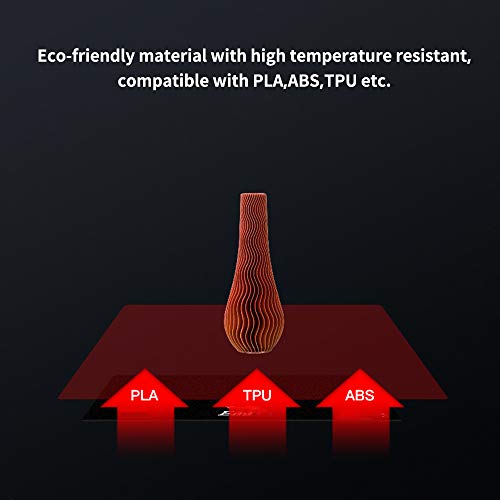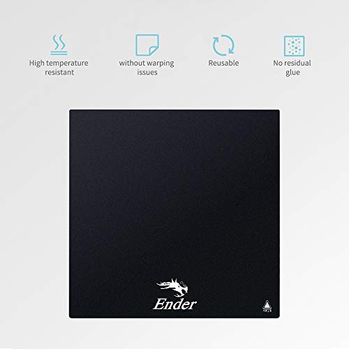 | Features | Maße: 235 x 235 mm; geeignet für Creality 3D Pinter Ender 3, Ender 3X, Ender 3 Pro, Ender 5, CR 20., Das Auftragungsblatt haftet an einem Druckbett, damit das Filament während des Druckens kleben bleibt, und ermöglicht anschließend eine saubere Entfernung des gedruckten Teils., Kompatibel mit ABS-, PLA-, HIPS-, PET + -, Ziegel- und flexiblen (TPE) Filamenten (separat erhältlich)., Einzelblatt-Design, schneller installiert und mit weniger Blasen als mit einem Band oder Film., ★ Oberflächenfrostbehandlung, kann für viele Male wiederverwendet werden. |