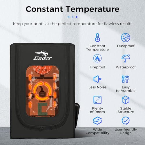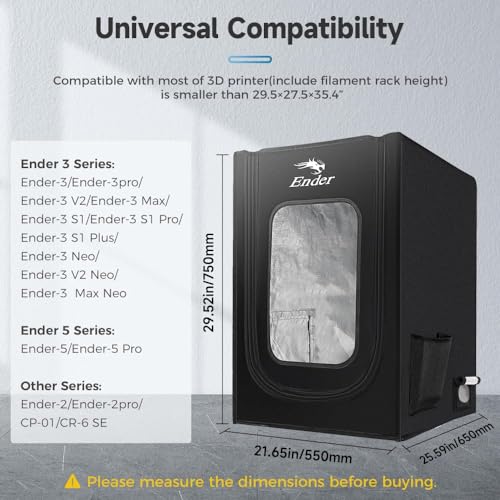💖Kompatibel mit verschiedenen 3D-Druckern: Mit einer Größe von 550 x 650 x 750 mm ist das Gehäuse mit den meisten FDM-3D-Druckern kompatibel, einschließlich Creality Ender3, Ender 3 Pro, 3V2, 3Neo, 3V2 Neo, 3 V3 SE, 3V3 KE, 3S1, 3 S1 Pro, Ender5, Ender 5 S1, Ender 7, CR-6 SE, CR-10 SE, K1, K1 Max, K1C, und andere Markenmodelle. Überprüfen Sie vor dem Kauf unbedingt, ob es mit Ihrem Drucker kompatibel ist, um eine perfekte Passform zu gewährleisten., 💖Hält eine konstante Drucktemperatur aufrecht: Das Creality 3D-Druckergehäuse ist so konzipiert, dass es eine Druckumgebung mit konstanter Temperatur aufrechterhält und sicherstellt, dass niedrige Temperaturen den Druckprozess nicht negativ beeinflussen. Dies trägt dazu bei, die Druckstabilität zu verbessern und häufige Probleme wie Risse, Verformungen und Schrumpfung zu lindern. So können Sie beruhigt sein und stets qualitativ hochwertige Drucke gewährleisten., 💖Überragende Sicherheit und Komfort: Mit einer Folie aus reinem Aluminium und flammhemmenden Außenmaterialien bietet das Creality 3D-Druckergehäuse hohe Temperaturbeständigkeit, Feuerbeständigkeit, Flammhemmung und Korrosionsbeständigkeit. Darüber hinaus sorgt es für eine wirksame Staub- und Lärmreduzierung, wodurch eine angenehme Druckumgebung entsteht und verhindert wird, dass Ihr Drucker mit Staub bedeckt wird. Auch die Reinigung ist einfach – einfach mit einem feuchten Tuch abwischen., 💖Rauchabzugsschnittstelle für sauberes Drucken: Die verbesserte Isolierabdeckung verfügt jetzt über eine Rauchabzugsschnittstelle, sodass Sie sie für eine saubere und frische Druckumgebung mit einem Rauchabzugsset verbinden können. Bitte beachten Sie, dass der Lüfter-Auspuffsatz nicht im Lieferumfang enthalten ist und separat erworben werden muss. Genießen Sie bei der Arbeit an Ihren 3D-Druckprojekten die Gewissheit eines sauberen Druckbereichs und frischer Raumluft., 💖Professioneller After-Sales-Support: Als offizieller Creality 3D Store bieten wir professionellen After-Sales-Support für unsere Produkte. Mit mehr als 20 Technikern, die einen 24/7-Kundendienst sowie eine 3-jährige beschränkte Garantie und lebenslange technische Unterstützung bieten, können Sie sich auf uns verlassen, wenn Sie Hilfe oder Unterstützung benötigen. Sie können uns gerne direkt über die Funktion „Frage stellen“ kontaktieren.