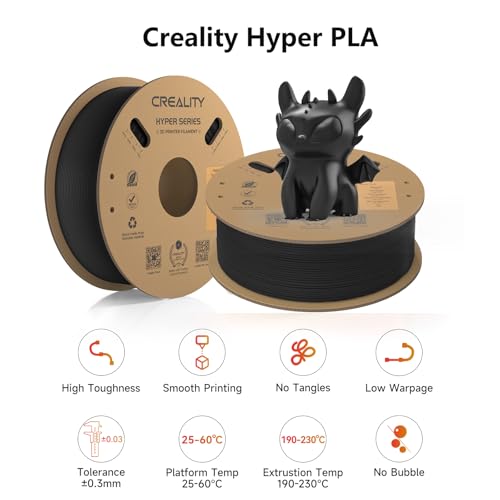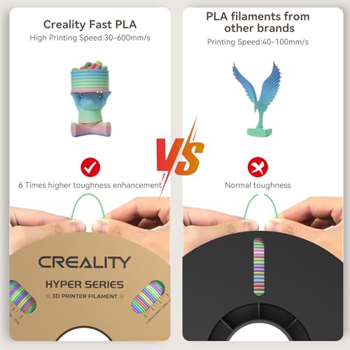 | Features | 10x schnellere Druckgeschwindigkeiten – Genießen Sie 10x schnellere Druckgeschwindigkeiten von bis zu 600 mm/s dank seiner hohen Fließfähigkeit und der schnell abkühlenden Formel. Die hohe Fließfähigkeit dieses 3D-Druckerfilaments sorgt für ausreichendes Schmelzen und Extrudieren, während die schnelle Abkühlung eine schnelle Formgebung für Hochgeschwindigkeitsdruck ermöglicht., Höhere Zähigkeit und überlegene Festigkeit – Creality Hyper PLA filament 1,75 mm bietet im Vergleich zu herkömmlichen PLA-Filamenten eine höhere Zähigkeit und überlegene Festigkeit. Mit einer besseren strukturellen Tragfähigkeit zeichnen sich Ihre gedruckten Modelle durch Haltbarkeit und Präzision aus., Gesund und umweltfreundlich – Creality 3D Drucker filament wählt umweltfreundliche Materialien aus, um ein sicheres und geruchsfreies Druckerlebnis zu gewährleisten. Die Verpackung verwendet Papierschalen und umweltfreundliche Kartons, wodurch die CO2-Emissionen reduziert werden., Maßgenauigkeit und Konsistenz – Offizielles Creality Hyper PLA filament mit 1,75 mm gleichmäßigem Drahtdurchmesser, stabile Extrusion. Basierend auf einer Zweiwege-Laserdurchmessermessung beträgt die Filamentdurchmessergenauigkeit 1,75 ± 0,02 mm, wodurch es gleichmäßiger herausfließt., Breite Kompatibilität – Die Hyper PLA-Filamente sind universell mit den meisten 1,75 mm FDM-3D-Druckern auf dem Markt kompatibel, wie z. B. Creality 3D-Druckern/Ender 3D Druckern, passend für AnycubicDrucker/passend für ElegooDrucker/Bambu/Ankermake/Prusa/Flashforge/Monoprice/FLSUN/Artillery/Qidi 3D Drucker usw. |
