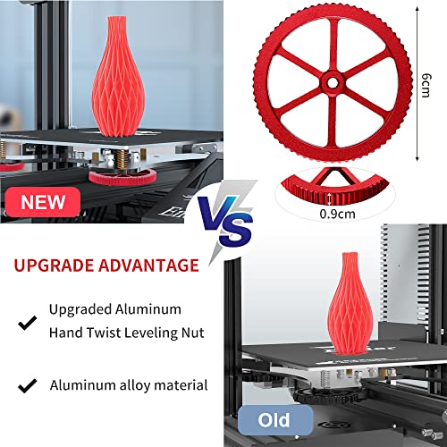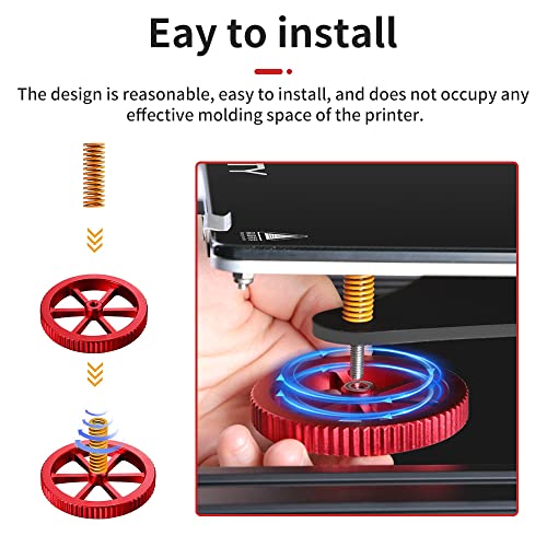 Features | ⭕【Verbesserte Nivelliermuttern mit Handdrehung】 Aus Aluminiumlegierung, Rost- und Korrosionsbeständigkeit, Metallmutter ist stärker und dreht sich fester als Kunststoffmuttern. Aluminium-Nivelliermuttern haben eine längere Lebensdauer als Kunststoffmaterialien. Sie machen das heiße Bett mehr stabil und einfacher, die Druckerplattform zu nivellieren., 🔔【Verbesserte Federn auf Bettebene】 Die 20-mm-Federn sind für den 3D-Drucker der Ender-Serie vorgesehen, machen Ihre Betthöhe genauer und rutschfester., ⭕【Einfach zu bedienen und im Lieferumfang enthalten】 Bequeme Installation, einfach zu nivellieren. Es nimmt keinen effektiven Formraum Ihres Druckers ein. 4 Stk. Verbesserte Red Hand Twist Nivelliermuttern und 4 Stk. 20 mm Betthöhenfedern., 🔔【Anwendbarkeit und Kompatibilität】 Original verbesserte Nivelliermuttern und -federn aus Aluminium für die Ender-Serie und die CR-Serie. Sie sind kompatibel mit Ender 3/3 Pro/3 V2/3 Max, Ender 5/5 Plus/5 Pro, CR-10, CR-10 V2, CR-10 V3, CR-10 Max, CR 10, CR-10 Mini, CR-10S, CR 10S Pro, CR 10S Pro V2, CR-10 Plus, CR-X, CR 20., 💞【Offizieller Creality 3D Store】Creality legt großen Wert auf die Benutzererfahrung des Käufers. Wenn Sie während der Installation und Verwendung unlösbare Probleme haben, können Sie sich gerne an uns wenden. Unser technisches After-Sales-Team wird Ihnen innerhalb von 24 Stunden detaillierte Lösungen anbieten. |