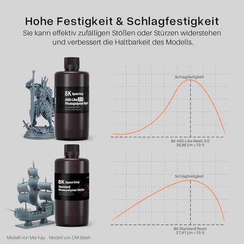 ELEGOO Upgraded 8K ABS-Like 3.0 Resin Space Grau 2000g, Hohe Zähigkeit, Schnellhärtendes 405nm LCD UV-Härtungsharz für 8K/12K/14K MSLA/DLP/LCD 3D Drucker
