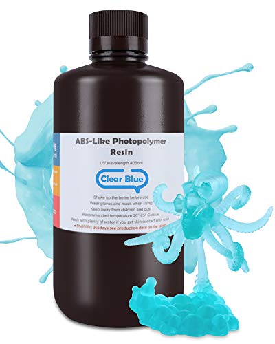 ELEGOO ABS-Like Resin für 3D Drucker 1000g Transparent Blau, 405nm Photopolymerharz 3D Drucker UV Resin für LCD/DLP 3D Drucker