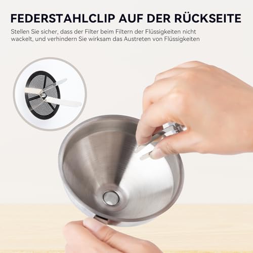 Der Trichter und der Siebfilter bestehen aus hochwertigem Edelstahl 304. Dies sorgt nicht nur für Langlebigkeit, sondern auch für eine einfache Reinigung. Der Edelstahl ist robust und widerstandsfähig gegen Korrosion, was für die Verwendung mit Harzen von großer Bedeutung ist. Die hochwertige Verarbeitung spiegelt sich in der Stabilität und dem langlebigen Design wider.