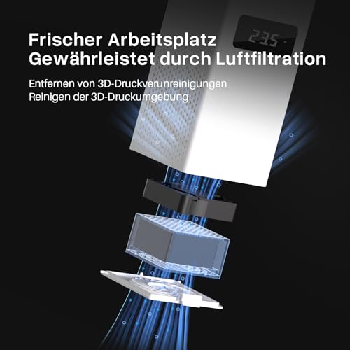 Die klaren und leicht verständlichen Bedienelemente ermöglichen eine einfache Handhabung, selbst für Einsteiger im 3D-Druck. Der integrierte Luftfilter steigert zudem die Funktionalität des Gerätes und trägt zu einem hoffentlich saubereren Druckumfeld bei.