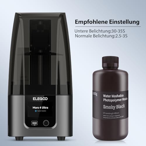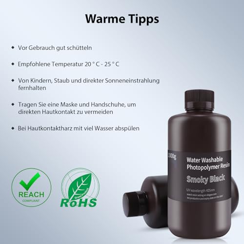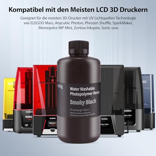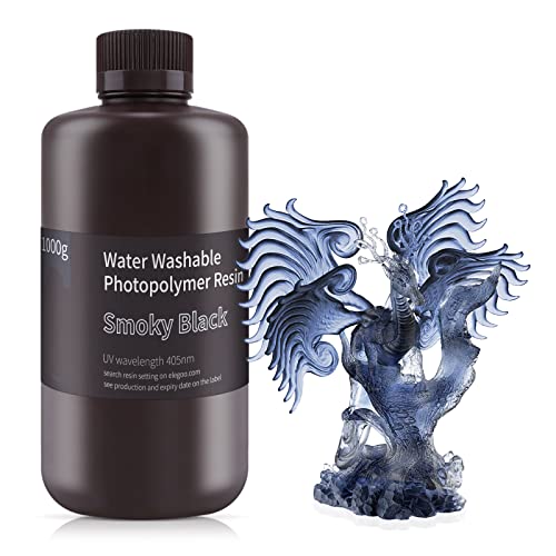 ELEGOO 405nm Wasser Waschbares Resin, 3D Drucker Rapid Resin für LCD UV Härtung Photopolymer 3D Drucker 1000g Smoky Schwarz