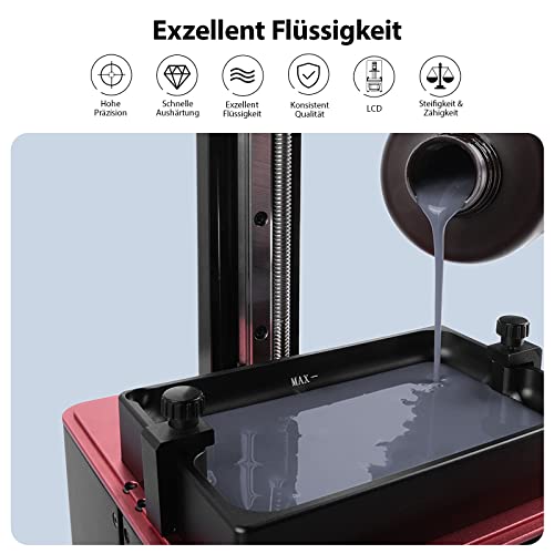 Das ELEGOO 405nm wasserwaschbare Resin sorgt für hohe Präzision und schnelle Aushärtung beim 3D-Druck. Es ist einfach mit Wasser zu reinigen und bietet brillante Farben für beeindruckende Modelle. Ideal für verschiedene LCD 3D-Drucker.