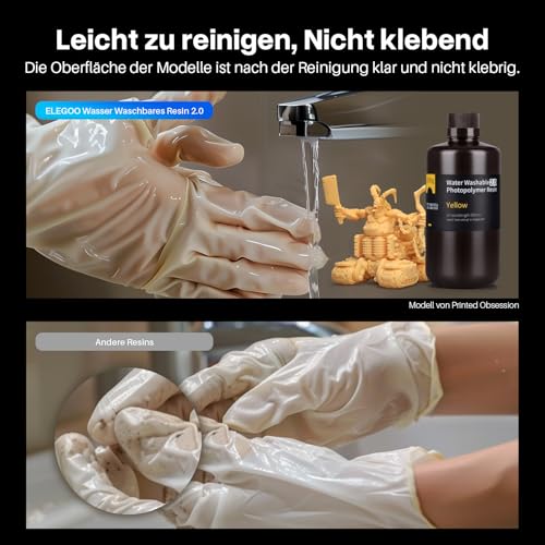 Mit dem ELEGOO Wasser Waschbaren 3D Drucker Resin druckst du hochqualitative, glatte Modelle. Die einfache Reinigung mit Wasser und die Vielseitigkeit des Harzes machen es ideal für Prototypen, Schmuck und mehr. Nachhaltig und geruchlos!
