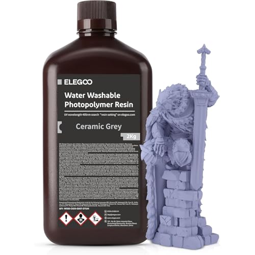 ELEGOO Resin Wasser Abwaschbar 2kg Grau, 405nm LCD UV-Härtung 3D Drucker Resin Water Washable Resin für MSLA/LCD/DLP Resin 3D Drucker