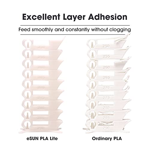| Features | 【PLA Lite】eSUN PLA Lite ist auf Basis von gewöhnlichem PLA modifiziert, es behält die Eigenschaften von PLA, leicht zu drucken, geringer Geruch und Reizung, umweltfreundlich und ungiftig; Verbessert auch die Druckleistung und die physikalische Festigkeit, hohe Zähigkeit und nicht leicht zu brechen., 【Stabile Maßtoleranz】Minimale Toleranz und geringe Verformung, um eine konsistente Zuführung und stabile Drucke zu gewährleisten, gute Schichtbindung, weniger Fadenbildung, keine Blasen, keine Risse, keine Verformung, einfache Handhabung, was zu einer hervorragenden Oberflächengüte führt und sehr präzise ist., 【Verknotungsfrei & kein Verstopfen】Full 1KG 3D Drucker Filament Spule, perfekte Rundheit und sehr enge Durchmessertoleranz, gute Wicklung, nicht überlappen oder verheddern. Schmelzen Sie gut, ziehen Sie reibungslos und konstant, ohne die Düse oder den Extruder zu verstopfen, hohe erfolgreiche Druckrate., 【Hohe Kompatibilität】Empfohlene Extrusions / Düsentemperatur 210-230℃, Betttemperatur 45-60℃. PLA Lite ist kompatibel mit den meisten FDM 3D Druckern, wie: Raise3D, Prusa, Voron, Creality 3D, etc. Weit verbreitet in Zubehör, Kunst & Handwerk, Heimdekoration, Spielzeug, Skulptur, Muschel und COSPLAY. Kostengünstige Wahl., 【Vakuumierte versiegelte Verpackung】Filament Nettogewicht: 1KG. eSUN Filament kommt in einem versiegelten Vakuumbeutel mit einem Trockenmittelbeutel, halten Sie einfach Ihre 3D-Drucker-Filamente in einem optimalen Lagerzustand und frei von Staub oder Schmutz vor dem Öffnen der vakuumierten versiegelten Verpackung. |