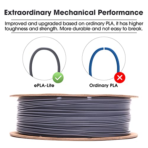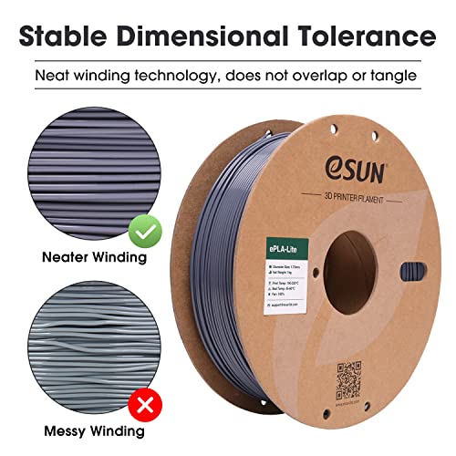 eSUN PLA Filament 1.75mm, Modifiziertes 3D Drucker Filament PLA, Maßgenauigkeit +/- 0.03mm, 1KG Spule (2.2 LBS) 3D Druck Filament für 3D Drucker (B-Grau, PLA Lite – 1KG)