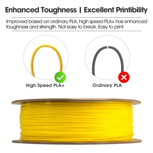 eSUN PLA+ Filament 1.75mm, PLA+HS Hochgeschwindigkeitsdruck 3D Drucker Filament Maßgenauigkeit +/- 0.03mm, 1KG Spule (2.2 LBS) Speedy PLA Plus Filament für High Speed Drucker,Gelb