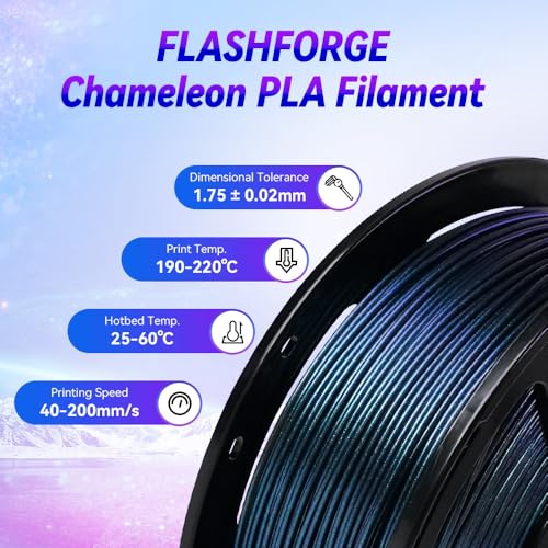 Entdecke das FLASHFORGE Chameleon PLA Filament, das seine Farbe mit Licht und Winkeln ändert. Perfekt für detailreiche Drucke, sorgt es für einfache Handhabung und optimale Druckqualität. Ideal für kreative 3D-Druck-Projekte!