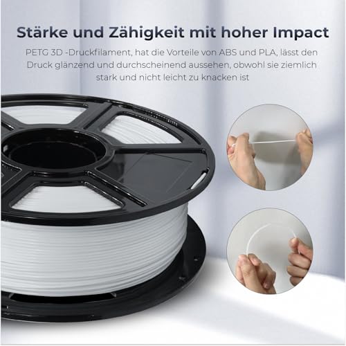 Flashforge PETG-Filament 1,75 mm, 1 kg (2,2 Pfund), hochfestes PETG-3D-Drucker-Filament, perfekt für den Außenbereich und den Langzeitgebrauch, weiß