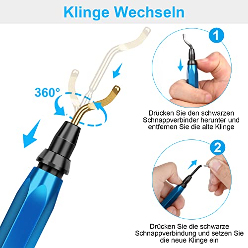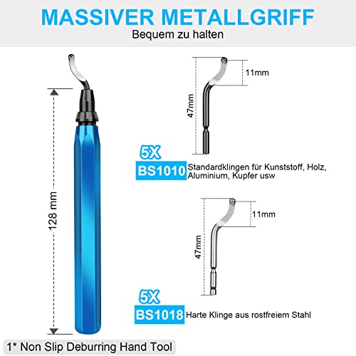 | Features | ✔ EFFIZIENT & KOMFORTABEL: Das Entgratwerkzeug mit dem leichtgängigen 360°-Schwenkkopf bietet eine hohe Leistung und Qualität, die immer im perfekten Winkel zur Werkstückkante steht und super einfach zu wechseln ist, ✔ 21 KLINGEN ENTHALTEN: Es enthält 4 Arten verschiedener multifunktionaler HSS-Schnellarbeitsstahl-Ersatzklingen: 6 Stück BS1010 / 5 Stück BS1012 / BS1018 / BK3010, geeignet für Holz, Kunststoff und weiches Metall, Edelstahl und (Durchmesser <1,5 mm) Loch und Clip sauber., ✔ Das Entgratungswerkzeug-Set ist super strapazierfähig, da sein Griff aus einer hochwertigen, lackierten Aluminiumlegierung besteht. Jeder Entgratschaber wurde poliert und rostfrei behandelt und fein geschliffen, mit guter Verschleißfestigkeit und langer Lebensdauer, ✔ Handentgrater aus Metall: Dank des Aluminiumgriffs im ergonomischen Design können Sie dieses Rohrentgratwerkzeug auch bei längerem Gebrauch sicher und bequem in der Hand halten.Arbeiten Sie mit diesen Werkzeugen noch angenehmer., ✔ Weit verbreitete Anwendungen: Der Metallentgrater ist für DIY-Projekte und andere Werkstückanwendungen konzipiert. Perfekt. Funktioniert auf Metall, 3D-Drucker, Kunststoff, PVC und Stahl, Aluminium, Kupfer, Messing und Kunststoffrohren und anderen Werkstücken. |