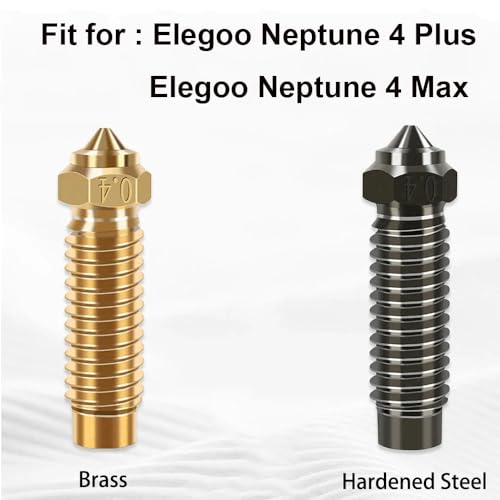 【Kompatibel mit mehreren FDM 3D Druckern】: Dieses Düsen-Kit ist kompatibel mit Elegoo Neptune 4 Plus/4 Max 3D Druckern, bitte bestätigen Sie Ihr 3D Druckermodell vor der Bestellung., 【10PCS 3D Drucker Extruder Düsen Kit】: Eingangsdurchmesser ist 1.75mm, Ausgangsdurchmesser ist 0.4mm, eingeschlossen 5pcs 0.4mm Messingdüsen, 1pc 0.6mm Messingdüse, 1pc 0.8mm Messingdüse, 1pc 1.0mm Messingdüse, 2pcs 0.4mm gehärtete Stahldüsen. Ausreichende Menge und gehärtetes Stahlmaterial von Hotend-Düsen machen es Ihnen leicht, sie rechtzeitig für Qualitätsdruck zu ändern., 【Hochpräzisionsdüsen】: Der Düsenset besteht aus hochpräziser CNC-Bearbeitung, mit besserer Wärmeleitfähigkeit und hoher Härte, glatter und gratfreier Innenwand, niedriger Viskositätskoeffizient, Düsenfehler kleiner als 0.02mm, abgeschrägt und gerundet, um den Widerstand des Diamantwinkels zum Filament zu reduzieren, glatteres Fütterungsfäden, nicht einfach zu verstopfen, Um Ihnen präzise und reibungslose Extrusionsdrucke zu liefern., 【High Quality 3D Printer Parts & Accessories】: Made of high-quality hardened steel, which has a large weight, advanced heat treatment process, and better oxidation resistance, which extends the service life of the nozzle. The contact surface is flat, solving the problem of filament leakage and effectively preventing printing head leakage. Stable performance and durability. Compatible with most high-temperature and low-temperature printing filaments on the market., 【Professioneller Kundenservice】: 100% Service zufriedenstellend, jede Frage oder Problem, fühlen Sie sich einfach frei, mit uns in Verbindung zu treten, und wir würden immer unser Bestes versuchen, zu helfen.