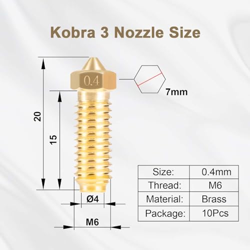 - Lieferumfang: 10 Stück 0,4mm Messingdüsen, kompatibel mit Anycubic Kobra 3 und Kobra 3 Combo