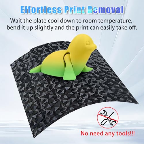 - Benutzerfreundlichkeit: Drucke lassen sich leicht von der Platte entfernen, ohne Werkzeuge verwenden zu müssen