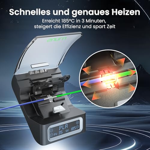 Eine der herausragenden Eigenschaften des SUNLU Filamentverbinders ist die schnelle Aufheizzeit. Innerhalb von nur drei Minuten erreicht das Gerät die nötige Temperatur für effektives Schweißen. Diese Effizienz ist besonders wertvoll, wenn du mehrere Projekte hintereinander bearbeiten möchtest.