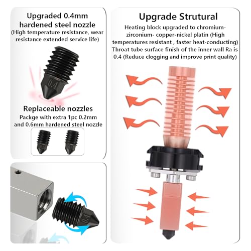 Upgrade Hotend Kit für Flashforge Adventurer 5M/5M Pro, schnell austauschbare Hot End Baugruppe 0,2/0,4/0,6 mm Düse aus gehärtetem Stahl für Adventurer 5M 3D-Druckerteil