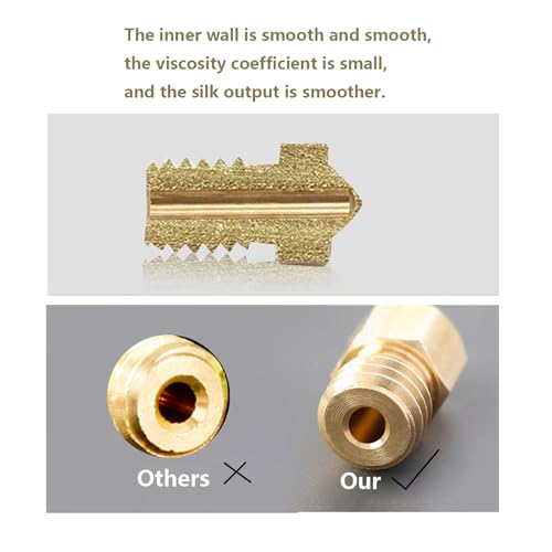 Die Messingdüsen bestehen aus hochwertigen Materialien, die nicht nur für eine lange Lebensdauer sorgen, sondern auch die Druckqualität erheblich verbessern. Die hohe Härte des Materials verhindert, dass die Düsen schnell verschleißen oder sich verformen.