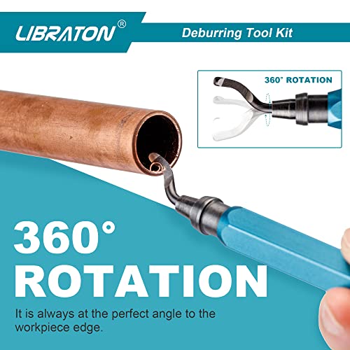 Der Libraton Entgrater mit 11 hochwertigen Klingen entfernt mühelos Grate von Metall, Kunststoff und mehr. Der ergonomische Aluminiumgriff und die drehbare Klinge sorgen für Effizienz und Komfort bei deinen Heimwerkerprojekten.