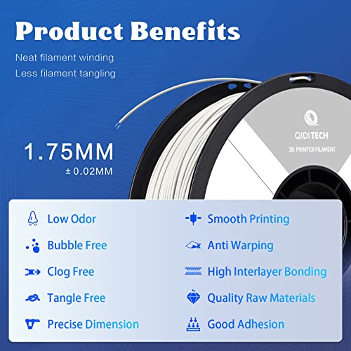 QIDI TECH ABS Rapido Filament 1.75mm, 3D Drucker Filament ABS 1kg Spule (2.2lbs), geeignet für Hochgeschwindigkeitsdruck, 3D Druck Filament Fit die meisten FDM 3D Drucker, hochbeständig, Filament Weiß