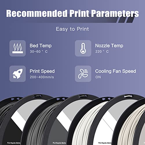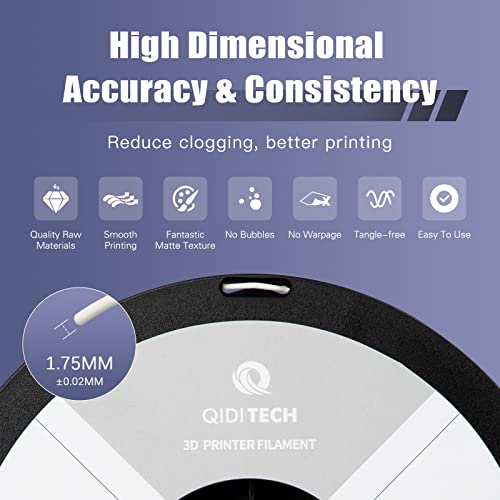 | Features | 【Mattes Finish】Dieses neue 3D-Druckfilament gibt Drucke mit glatten und nicht glänzenden Farben aus. Qidi PLA Matte Filament 1.75 hat eine unglaublich matte Oberflächenbeschaffenheit, die hilft, die Schichten Ihres Drucks zu verbergen. Es ist perfekt für Kreationen, die ein dezentes, mysteriöses Aussehen erfordern., 【PLA Matte Filament 1.75 – Geeignet für Hochgeschwindigkeitsdruck】 PLA Rapido Matte ist eine neue Art von pla-mattem Filament, das von QIDI TECH neu entwickelt wurde. Im Vergleich zu gewöhnlichen PLA-Filamenten kann QIDI PLA Rapido matt für den Hochgeschwindigkeitsdruck mit Druckgeschwindigkeiten von bis zu 400 mm/s verwendet werden. Wir empfehlen dringend, es mit dem neu entwickelten X-Smart3 3D-Drucker von QIDI TECH zu verwenden., 【Verwicklungsfrei und feuchtigkeitsfrei】QIDI TECH PLA Rapido Matte Filament 1,75 mm wird vollständig mechanisch gewickelt und streng manuell geprüft, um sicherzustellen, dass die Schnur sauber und weniger verwickelt ist, um ein Reißen und Reißen der Schnur zu vermeiden. Es wird getrocknet und in einer Verpackung mit Trockenmittel vakuumversiegelt., 【Umweltfreundlich und breite Kompatibilität】 Das matte PLA-Filament wird aus Stärkerohstoffen hergestellt, die aus erneuerbaren Pflanzenressourcen gewonnen werden, und weist eine niedrigere Schmelztemperatur auf. Geruchlos, keine Verschmutzung und ungiftig während des Drucks. QIDI TECH PLA Matte Rapido Filament ist perfekt kompatibel mit den meisten FDM 3D-Druckern auf dem Markt, die 1,75 mm Filament verwenden., 【Maßgenauigkeit und Konsistenz】 QIDI TECH 3D-Drucker PLA Mattes Filament mit 1,75 mm Durchmesser, Maßgenauigkeit +/- 0,02 mm. Die strengen Toleranzen und die perfekte Maßhaltigkeit sorgen für eine reibungslose und gleichmäßige Zufuhr und einen gleichmäßigen Ausfluss des PLA Rapido Matte-Filaments durch den Extruder, wodurch es gleichmäßiger herauskommt., 【Empfohlene Druckeinstellungen】Wir empfehlen, das Filament PLA Rapido Matte bei einer Düsentemperatur von 220 °C, einer Betttemperatur von 30–60 °C und einer Druckgeschwindigkeit von 200–400 mm/s zu drucken. Hinweis: Bitte führen Sie das Filament durch das feste Loch, um Verwicklungen nach dem Gebrauch zu vermeiden. |