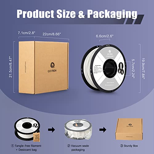 QIDI TECH hat das Filament so gestaltet, dass es vor Verwicklungen und Feuchtigkeit geschützt ist. Dies ist entscheidend für Benutzer, die in einer Umgebung drucken, wo Staub und andere Unreinheiten ein Problem darstellen könnten. Durch die vakuumversiegelte Verpackung bleibt das Filament frisch und einsatzbereit.