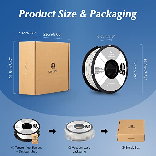 QIDI TECH PLA Rapido Filament 1.75mm, 3D Drucker Filament PLA, geeignet für Hochgeschwindigkeitsdruck, PLA Filament 1.75 für die meisten FDM 3D Drucker, 1 KG Spule (2.2lbs), Weiß