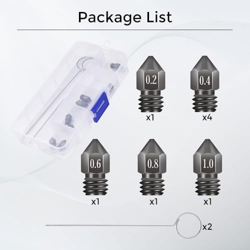 | Features | [Haltbares Material]- MK8-Extruderdüsen bestehen aus gehärtetem Wolframstahl und haben eine längere Lebensdauer als die normale Messingdüse. Die Härte liegt über HRC60, kann den Abrieb an der Innen- und Außenseite der Düse während des Langzeitdrucks reduzieren, hitzebeständiger und haltbarer als gewöhnliche Messingdüsen., [Superhohe Temperaturbeständigkeit] – Die maximale Temperatur dieser Düse aus gehärtetem Werkzeugstahl könnte 450 ° C erreichen, geeignet für 3D-Druck bei hohen Temperaturen, kompatibel mit Materialien wie PLA, ABS bis Kohlefaser, sogar PEEK., [Hohe Präzision] – Halten Sie während des Druckens eine stabile Temperatur, lassen Sie das Filament gleichmäßig heraus und erstellen Sie ein perfekteres Druckerelement als mit einer normalen Metalldüse. Auch mit höherer Druckgeschwindigkeit bei gleicher Druckpräzision. Vermeiden Sie Verstopfungen während des Druckens, leicht zu reinigen. Stellen Sie sicher, dass die Eingangs- und Ausgangslöcher konzentrisch sind und das Innere der Düse ohne Grate glatt ist., [Anwendbarkeit & Kompatibilität] – Unsere Creality-Düsen sind mit fast allen FDM-Druckern kompatibel, passen auch für MK8-Heizblöcke. Unsere Wolframdüsen sind auch für 3D-Drucker der Makerbot Creality Ender 3-Serie und CR-10-Serie 3D-Drucker, MK8 Makerbot Reprap Prusa I3, kompatibel mit allen 1,75-mm-PLA-ABS-3D-Druckern. Passen genau wie das Original., [Paket enthalten] – Mit 8 schwarzen MK8-Düsen unterschiedlicher Größe, Größe 0,2 mm / 0,3 mm / 0,4 mm / 0,5 mm / 0,6 mm, ausreichende Menge und Größe, um Ihren rechtzeitigen Austausch zu erleichtern und einen hochwertigen Druck zu erzielen. Bei Fragen zum Produkt wenden Sie sich bitte per Amazon-Nachricht an uns. Wir bieten Ihnen professionelle technische Beratung und Lösungen. |