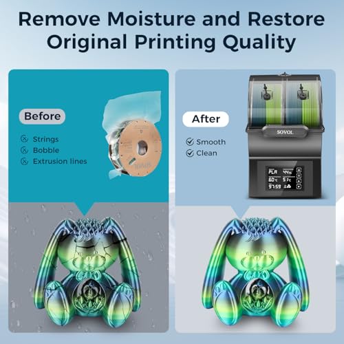 Der Sovol SH02 Filament Trockner ermöglicht dir das gleichzeitige Trocknen von zwei Rollen 3D-Druck-Filamenten. Mit schneller Heiztechnologie und intelligenter Sicherheit schützt er deine Materialien vor Feuchtigkeit und verbessert deine Druckergebnisse. Ideal für kreative Projekte!