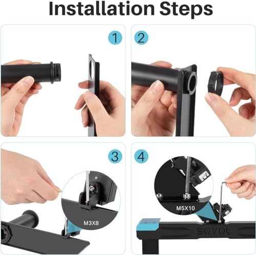 | Features | 【Qualitätssicherung】Sovol upgrade Filament-Auslaufsensor und Filament-Spulenhalter sind NUR mit Sovol SV06 kompatibel. Dieses Kit ist allesamt original und von hoher Qualität mit 100 % Qualitätssicherung., 【Genaue Erkennung】Bei normalem Vorschub leuchtet das blaue LED-Licht kontinuierlich; Wenn das Filament aufgebraucht ist, erlischt das blaue LED-Licht., 【Drehbares Bearing】Unabhängiges rotierendes Wellendesign für geringen Rotationswiderstand, gute Rollstabilität, weniger Laufverschleiß und stabile Filamentzufuhr., 【Einfache Installation】Der Filamenthalter muss nur mit Schrauben befestigt werden, die perfekt zum 3D-Basisprofil passen. Detaillierte Installationsschritte finden Sie in der Bildanzeige links., 【Lieferumfang】 Dieses Set enthält Sovol-Filamentsensor*1, Sovol-Filamenthalterungsrolle und andere notwendige Installationsteile. |