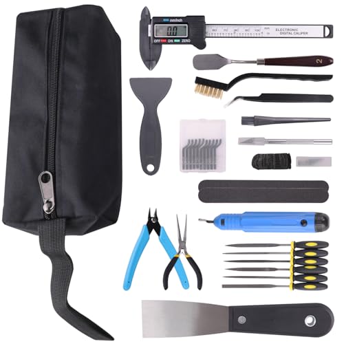 Das Werkzeugset beinhaltet eine breite Palette an Werkzeugen, die sowohl für den Druckprozess als auch für die Nachbearbeitung von Modellen nützlich sind. Ob du eine präzise Messtechnik oder effektive Spachtelwerkzeuge benötigst, hier findest du alles.