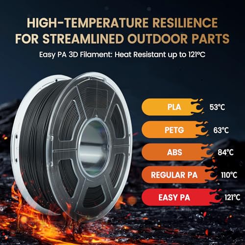 SUNLU Easy PA 3D Druckerfilament, Easy Nylon Filament 1,75 mm, Keine Risse, Verformungsbeständig, Hochhitzebeständig, Easy PA 3D Druckfilament Passt für die Meisten FDM-3D-Drucker, 1KG, Schwarz