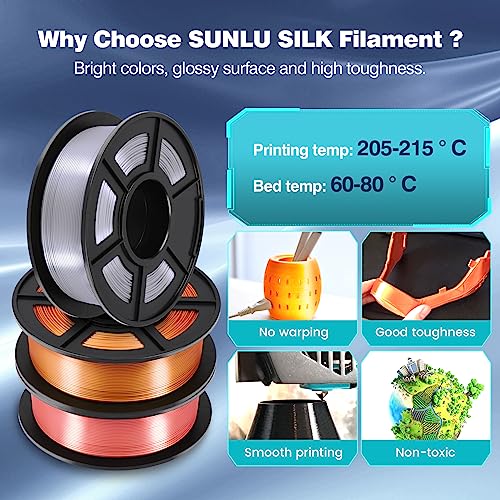 Features | ①【SUNLU Shinny Surface PLA+ Filament】 Im Vergleich zu normalem PLA weist Silk PLA+ eine glatte und glänzende Druckoberfläche auf, die Ihrem Druckprojekt ein seidig glattes Finish verleihen kann. Ideal für Druckprojekte mit einem dekorativen und luxuriösen Touch., ②【Stärker und einfacher zu verwendendes PLA+ Filament】SUNLU PLA+ stärker als normales PLA, verabschieden Sie sich von Sprödigkeit. Bessere zähigkeit, hellere farben, geringere schrumpfung, kein Verstopfen, kein Verheddern, keine Blasen. SUNLU PLA plus Filament ist einfacher zu drucken und geruchlos, wodurch gute Druckergebnisse erzielt werden., ③【Maßgenauigkeit und Konsistenz】 Diese robusten SILK PLA+ Filamente haben enge Toleranzen. Durchmesser 1,75 mm, Maßgenauigkeit +/- 0,02 mm; 1-kg-Spule, ④【Hochkompatibles Seidenfilament】Kompatibel mit 99% FDM 3D-Druckern und 3D-Stiften. Umweltschutz, SUNLU SILK 1kg Filament wird aus Stärkerohstoffen hergestellt, die aus nachwachsenden Pflanzenressourcen gewonnen werden., ⑤【After-Sales-Garantie】 SUNLU ist ein Hightech-Unternehmen, das sich auf Forschung und Entwicklung, Produktion und Vertrieb von 3D-Druckfilamenten, 3D-Druckern und vielen 3D-Druckmaterialien wie PLA, PETG usw. spezialisiert hat. Wählen Sie SUNLU und kaufen Sie risikofrei. |