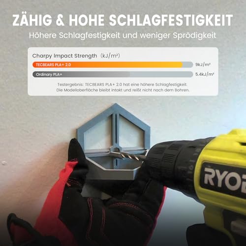 Ein weiteres herausragendes Merkmal des TECBEARS PLA+ Filaments ist seine Zähigkeit. Es hat einen höheren Biegemodul und eine verbesserte Bruchdehnung im Vergleich zu herkömmlichem PLA. Dadurch eignet es sich ideal für funktionale Teile, die Beanspruchungen standhalten müssen.