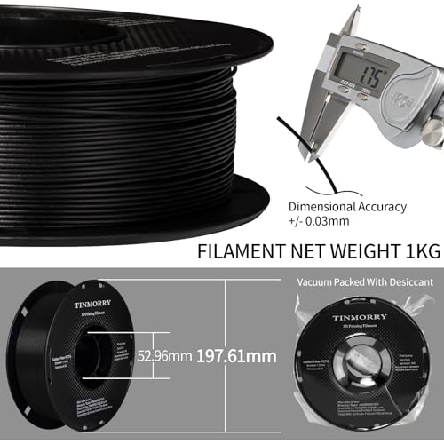 Kohlefaser PETG Filament 1.75mm, TINMORRY PETG-CF 3D-Druckmaterialien, Kompatibel mit Creality K1C, QIDI MAX3, FLASHFORGE Adventurer 5M, Prusa MK4, Bambu LAB FDM 3D Drucker, 1 KG 1 Spule, Schwarz
